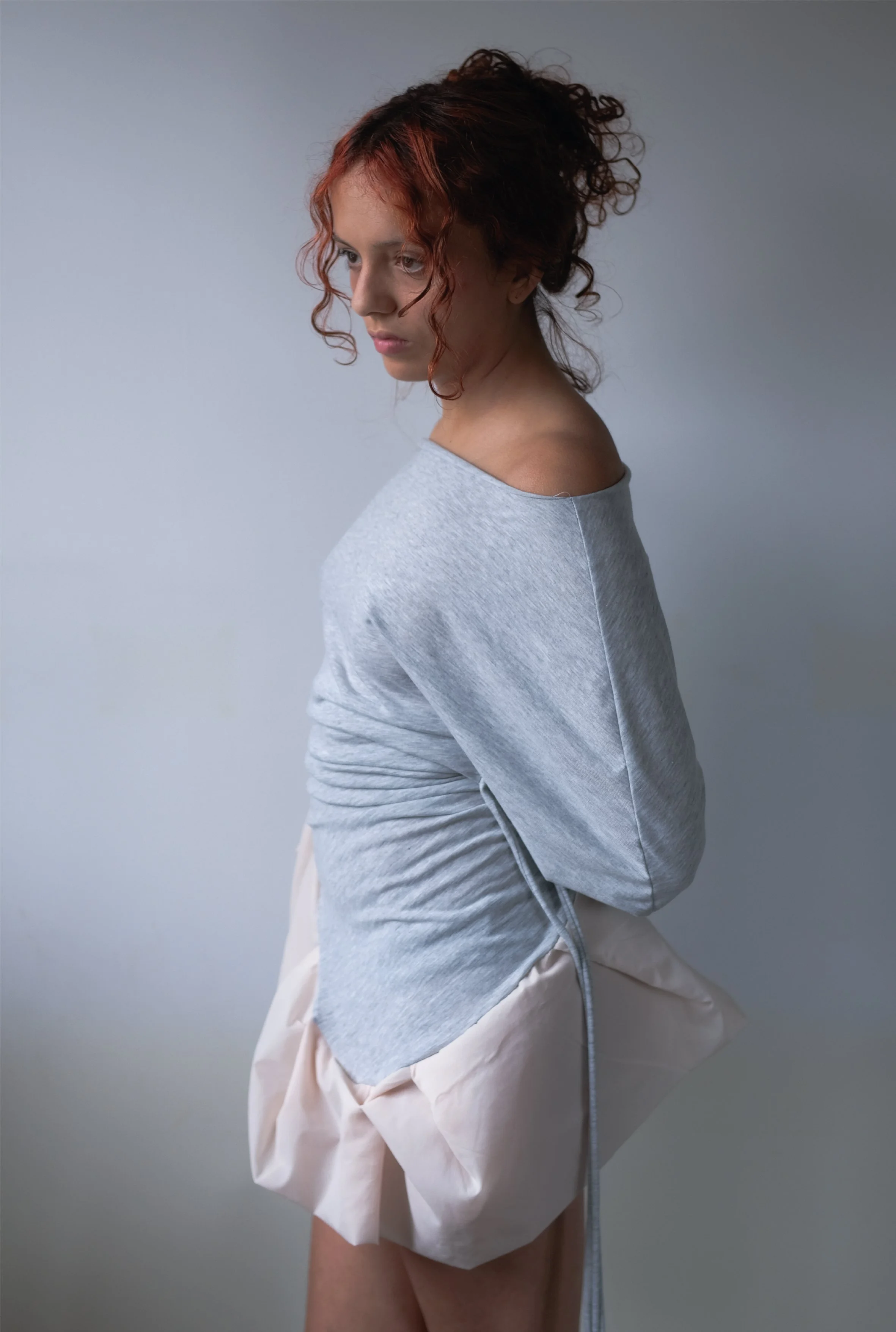 Grey and Pink ruffled top